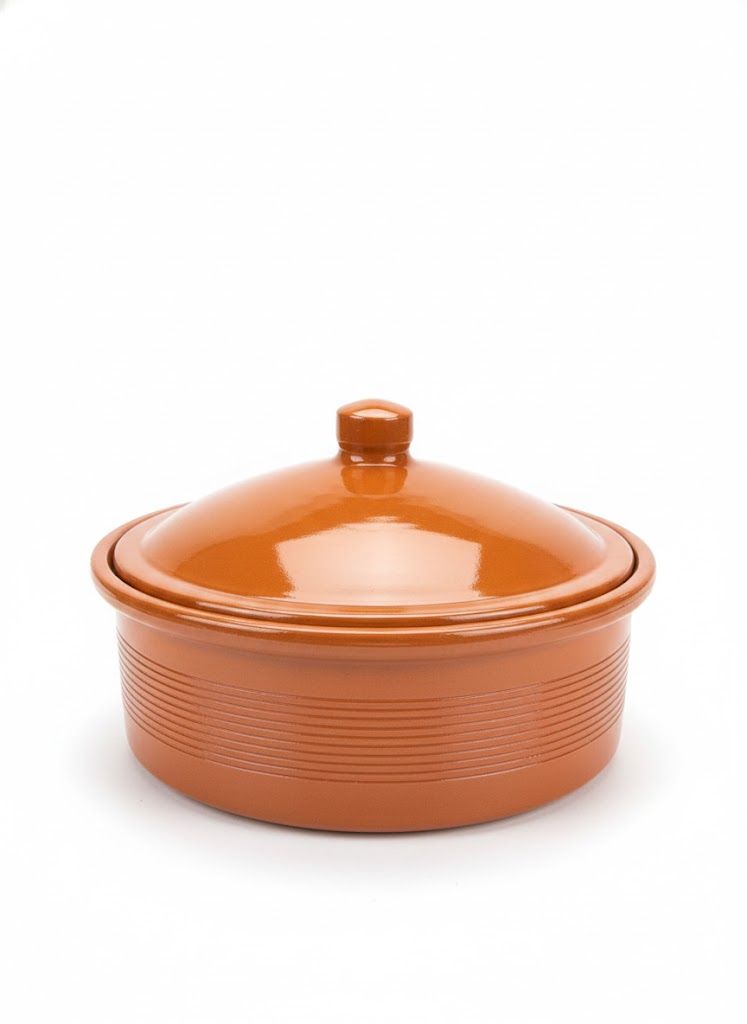 Traditional Algerian Clay Coccotte, ideal for slow-cooking and serving rich, flavorful dishes.